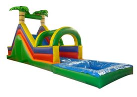 Ready for a splash fun day! This unit has many functions: jumping area, climbing wall, slide, and pool.